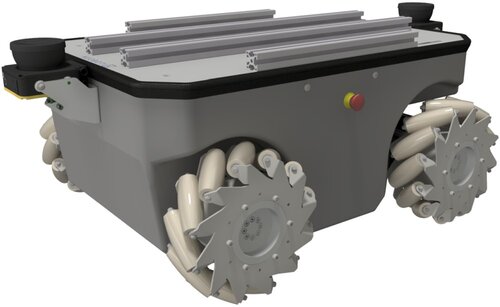 Der mobile Roboter MPO-500 besitzt Mecanum-Räder, die ihm eine außergewöhnliche Manövrierfähigkeit verleihen und dem Roboter die Fähigkeit geben, sich übergangslos in jede beliebige Richtung zu bewegen.