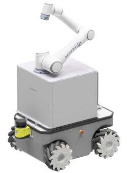 Extrem flexibles und individualisierbares System. Klassische und omnidirektionale Kinematiken können mit verschiedenen Cobot-Armen kombiniert werden.