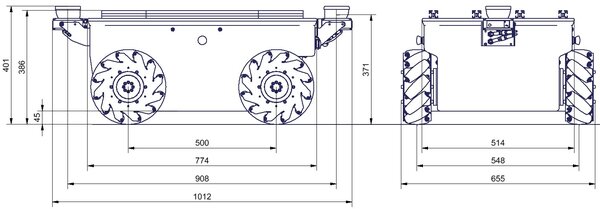 Der mobile Roboter MPO-500 besitzt Mecanum-Räder, die ihm eine außergewöhnliche Manövrierfähigkeit verleihen und dem Roboter die Fähigkeit geben, sich übergangslos in jede beliebige Richtung zu bewegen.