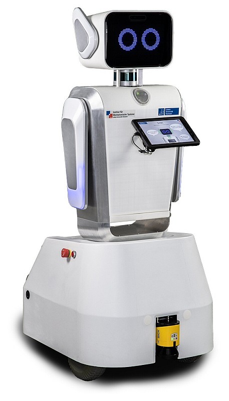 Ich basiere auf dem mobilen Roboter MP-500 von Neobotix und diene zu Forschung im Bereich der Mensch-Roboter-Kollaboration.