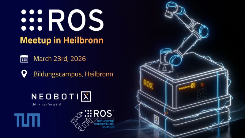 Neobotix GmbH freut sich, gemeinsam mit dem TUM Campus Heilbronn, dem Fraunhofer IPA und ROS-Industrial Europe das erste ROS-Meetup in Heilbronn anzukündigen.
